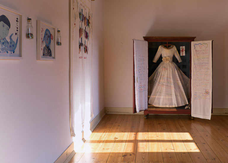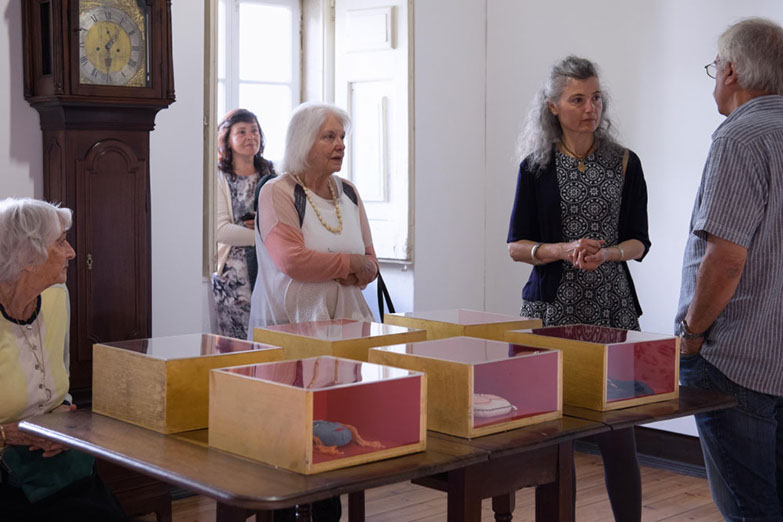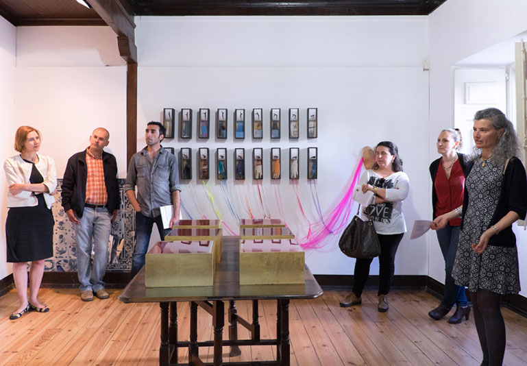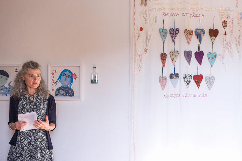 No labirinto dos afectos moram peças de uma ternura impossível, coisas inanimadas às quais foi oferecido o poder de carregarem a profundidade intangível do mundo. Existe uma dimensão da realidade que não se deixa ver, tocar ou ouvir e, no entanto, encontramo-la aqui, em pedacinhos de coisas feitas afectos, pedacinhos de coisas que ganharam o dom de ser visíveis, tácteis e sonoras. O papel, a madeira, o vidro, os metais, o tecido — sobretudo o tecido, como metáfora perfeita dos pequenos pontos que nos bordam a vida — atravessam uma metamorfose da matéria em algo muito mais, possível apenas por um processo inteiro de autoconsciência, descoberta emocional, arrumação de sentido e, finalmente, criação. Uma elevação de objectos comuns à condição de testemunhas de memórias e sentimentos, vivências e aprendizagens, momentos de partida e lugares de chegada.